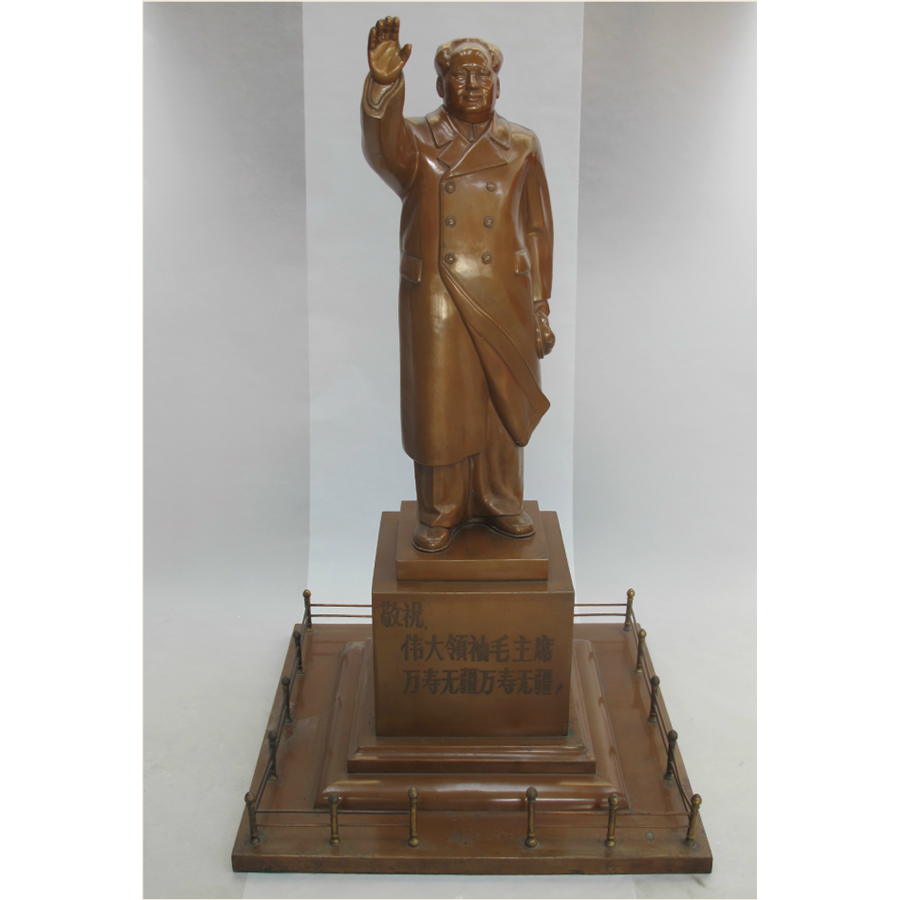 制作于1969年,用1.2毫米厚的紫铜板,采用传统锻錾工艺精心制作而成。作为全厂职工为九大的献礼。此件产品的工艺水平达到当代铜锻錾雕刻工艺的最高水平,其造型逼真,特别是脸部的造型和人物细部的刻画,充分表现出毛泽东的伟人形象和气魄,是我厂的镇厂之宝。