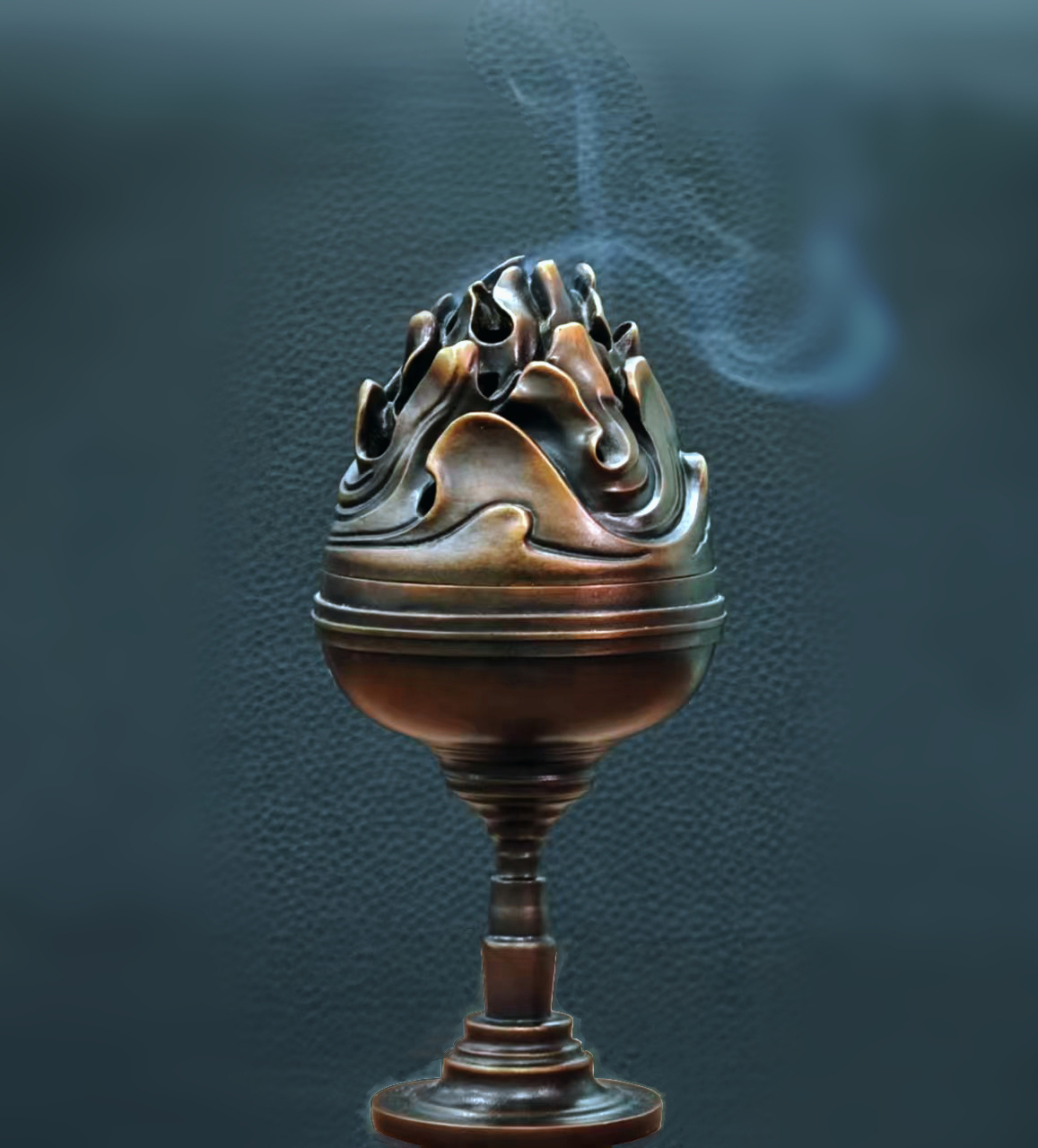 金属公司出品的博山炉顶部高而尖,仿佛错落分布的群山,匠人巧妙的借山势镂孔,当炉中的香料点燃时,香烟从镂孔处袅袅而出,有如仙气缭绕在山峦间,给人以置身仙境的感觉,加上幽香阵阵,使眼前的“仙境”不仅有形象,而且有气味。除了焚香,博山炉还可以用来熏衣、熏被,以达到除味、避秽的效果。