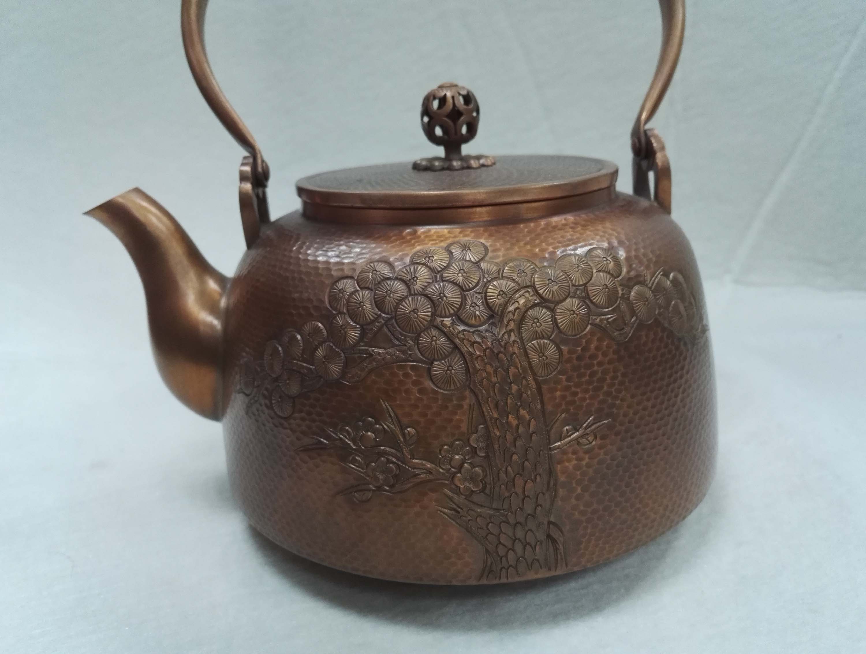 壶身纹饰采用中国传统的装饰题材岁寒三友,是高尚人格的象征,也是雅俗共赏的吉祥图案
