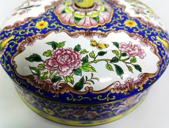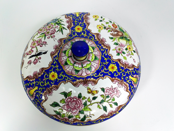 铜胎画珐琅,又称“洋瓷”,与景泰蓝同为中国传统珐琅工艺的两大瑰宝,享誉中外。花纹繁复,色彩艳丽,做工精美,让人爱不释手。