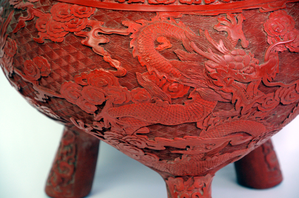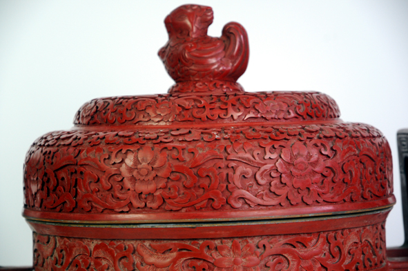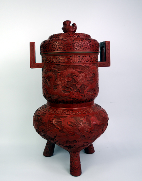蒸食用具,后来演变成古代贵族财富、地位、权利的象征。(北京雕漆工厂上世纪八十年代作品)